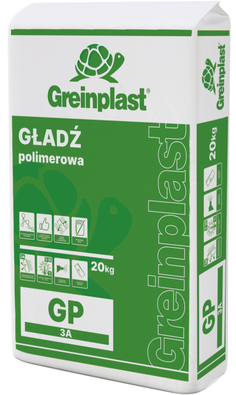 Gładź polimerowa Greinplast GP do nakładania ręcznego lub mechanicznego, przeznaczona do wygładzania ścian wewnętrznych budynków. Charakteryzuje się wydłużonym czasem pracy, bardzo dobrymi parametrami roboczymi i gładką powierzchnią finalną.