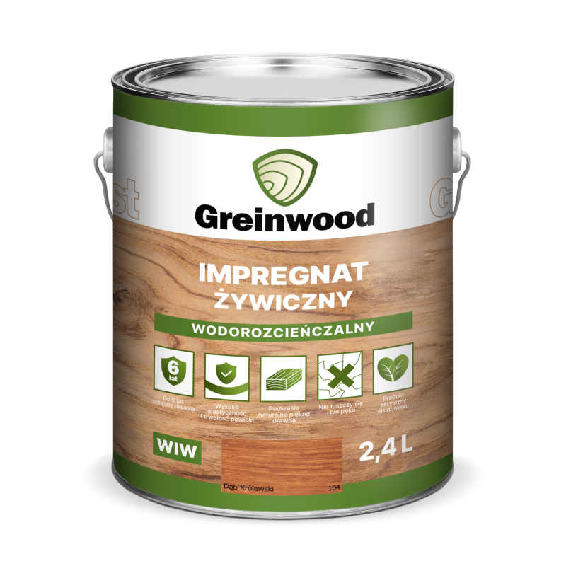 Impregnat na bazie innowacyjnej dyspersji alkidowej, wykonanej w technologii wodnej, dodatków modyfikujących i kolorantów. Baza alkidowa zapewnia wyjątkowo głęboką penetrację malowanego drewna, bardzo wyraźnie podkreśla naturalny wzór słojów drewna, tworząc piękne efekty dekoracyjne, a na drewnie heblowanym tworzy efekt jedwabiście gładkiej powierzchni. Równocześnie powłoka nie pęka, nie łuszczy się, jest odporna na wilgoć i wnikanie wody, a tym samym zapewnia długoletnią ochronę przed warunkami atmosferycznymi. Impregnat Greinplast WIW dostępny jest w 16 kolorach według palety barw Producenta. W systemie z BIOAKTYWNYM IMPREGNATEM GRUNTUJĄCYM DO DREWNA GREINPLAST WB zapewnia wysoką ochronę przed oddziaływaniem biologicznych czynników niszczących drewno, zapewniając mu do 6 lat ochrony.