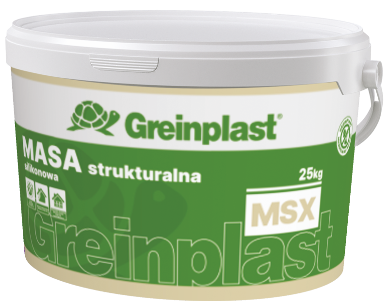 GREINPLAST MSX to silikonowa masa strukturalna stosowana do wyrównywania i wygładzana zewnętrznych silikonowych wypraw tynkarskich o różnych strukturach, w celu uzyskania gładkiej powierzchni o minimalnej fakturze. Służy również do wykonywania nietypowych dekoracyjnych faktur powierzchni elewacji. Może być stosowana na wszelkie typowe podłoża mineralne takie jak: beton, tynki cementowe itp. po ich wysezonowaniu.