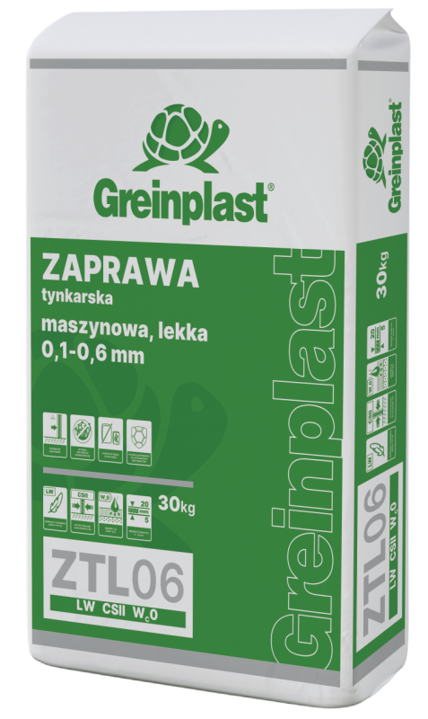 Służy do maszynowego (z wykorzystaniem agregatów tynkarskich) wykonywania tynków cementowo-wapiennych w kategoriach powierzchni od I do III, wewnątrz budynków. Wyrób klasyfikowany jako zaprawa tynkarska lekka (typ LW), o wytrzymałości na ściskanie kategorii CS II (1,5-5,0 N/mm2) i kategorii absorpcji wody Wc0. Może być stosowany po wcześniejszym wykonaniu warstwy podkładowej (tzw. obrzutki) z zaprawy GREINPLAST ZTP.